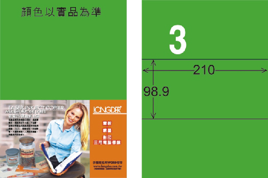 商品名稱:龍德 LD-807-FG-C A4雷射影印標籤 螢光綠 / 包