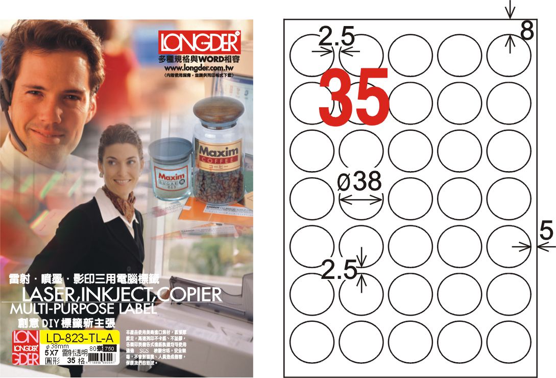 商品名稱:龍德 LD-823-TL-A A4雷射影印標籤 透明PET(可列印) / 盒