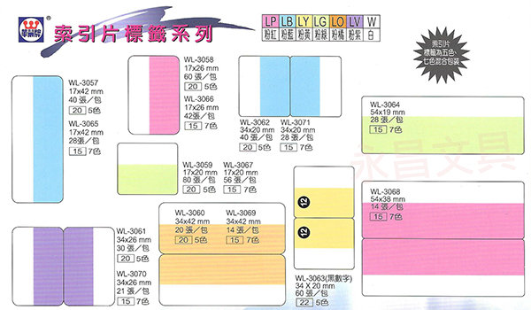 商品名稱:WL-3066 七色索引片標籤(17x26mm) 42張/包商品單位:包商品型號:WL-3066