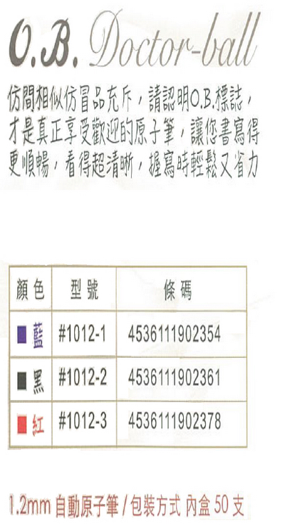>O.B. Doctor-ball自動原子筆1.2mm (50支/盒) OB#1012