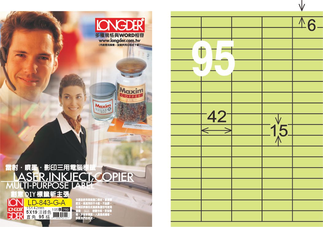 商品名稱:龍德 LD-843-G-A A4三用電腦標籤 淺綠色 / 盒