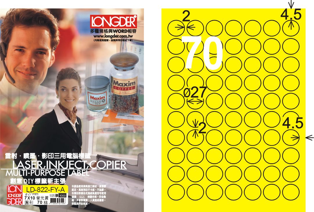 商品名稱:龍德 LD-822-FY-A A4雷射影印標籤 螢光黃 / 盒