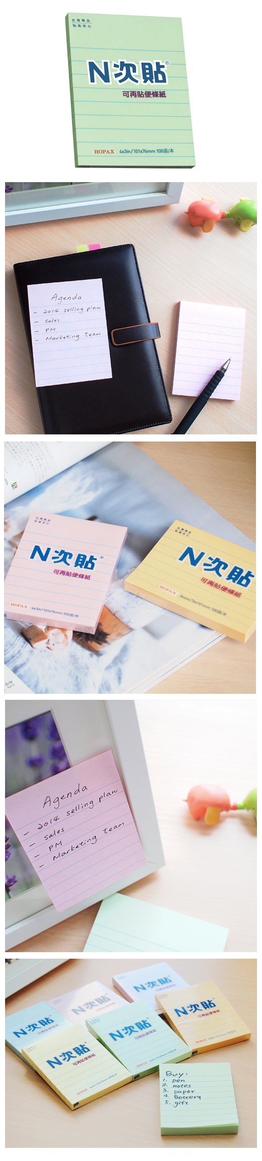 ◎品 名:N次貼 61710 格線型可再貼便條紙 4”x3”(101x76mm),綠◎單 位:100張/本◎型 號:61710◎規 格:4”x3”(101x76mm)◎顏 色:綠◎特 色:N次貼熱銷產品 標記提示輕鬆寫,分類備忘隨手貼 留言、註記、傳遞訊息,格線印刷、條列書寫方便!!
