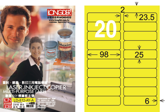 商品名稱:龍德 LD-812-AY-A A4雷射影印標籤 黃銅版 / 盒