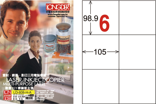 商品名稱:龍德 LD-808-H-A A4平光防水高解析噴墨標籤 / 盒