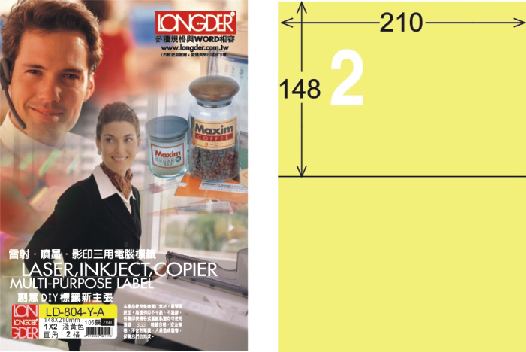 商品名稱:龍德 LD-804-Y-A A4三用電腦標籤 淺黃色 / 盒