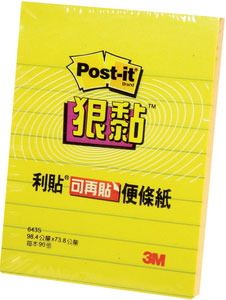 【3M】643S 利貼 狠黏 可再貼便條紙(橫格系列) 黃 90張/本
