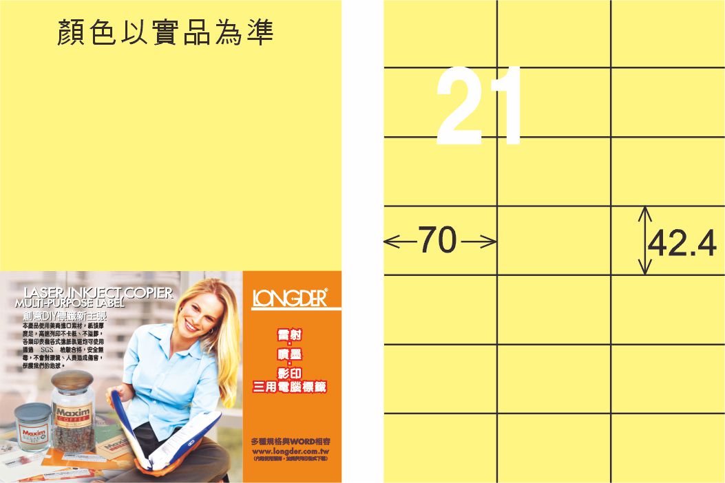 商品名稱:龍德 LD-836-Y-C A4三用電腦標籤 淺黃色 / 包