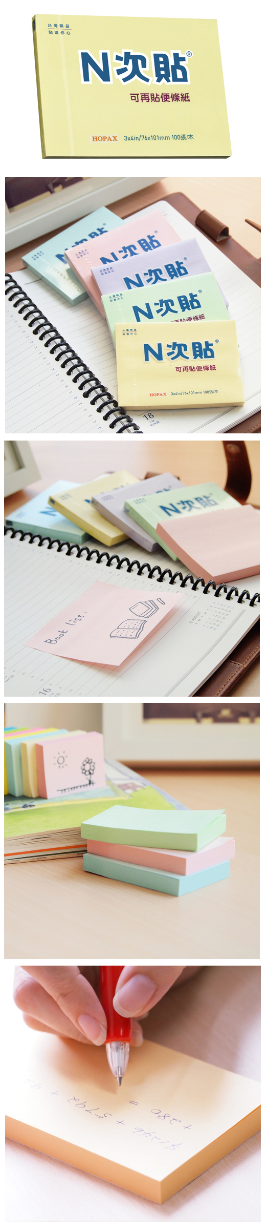 ◎品 名:N次貼 61121 標準型可再貼便條紙 3"x4"(76x101mm),黃◎單 位:100張/本◎型 號:61121◎規 格:3"x4"(76x101mm)◎顏 色:黃◎特 色:N次貼熱銷產品 標記提示輕鬆寫,分類備忘隨手貼 學習、筆記,好黏易撕重覆黏貼最便利!!