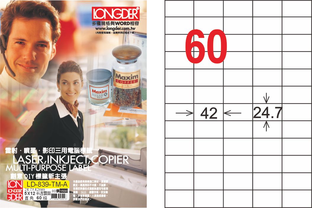 商品名稱:龍德 LD-839-TM-A A4半透明霧面(三用可列印) / 盒
