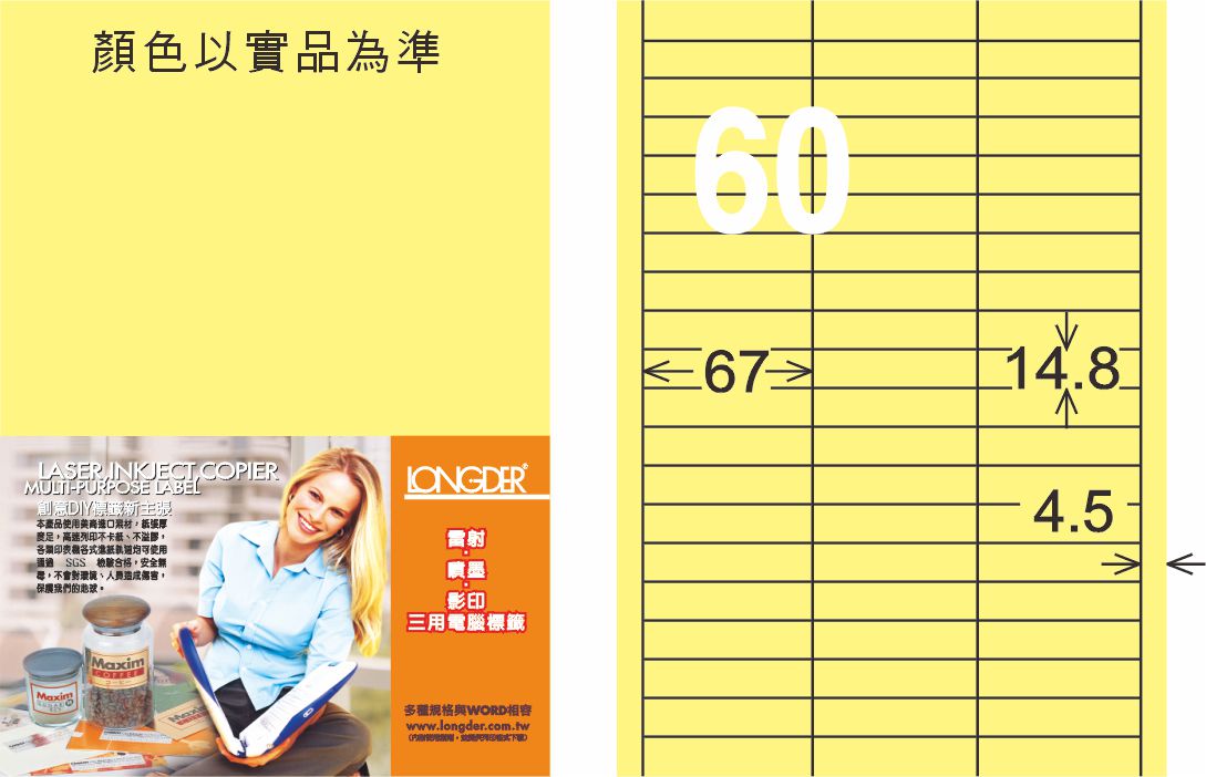 商品名稱:龍德 LD-844-Y-C A4三用電腦標籤 淺黃色 / 包