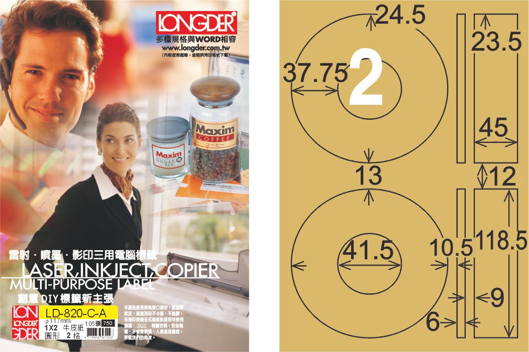 商品名稱:龍德 LD-820-C-A A4三用電腦標籤 牛皮紙 / 包