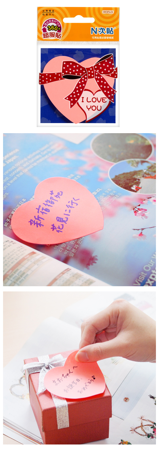 ◎品 名:N次貼 61804 環狀膠-扎型可再貼便條紙 3”x3”(70x70mm)愛心
