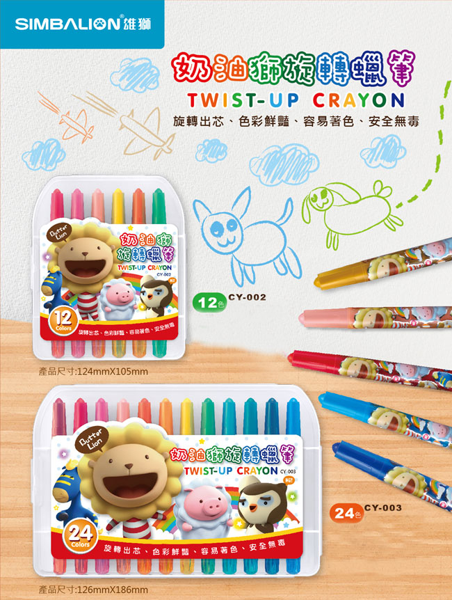 商品名稱:雄獅 CY-002 奶油獅旋轉蠟筆(12色) / 盒
