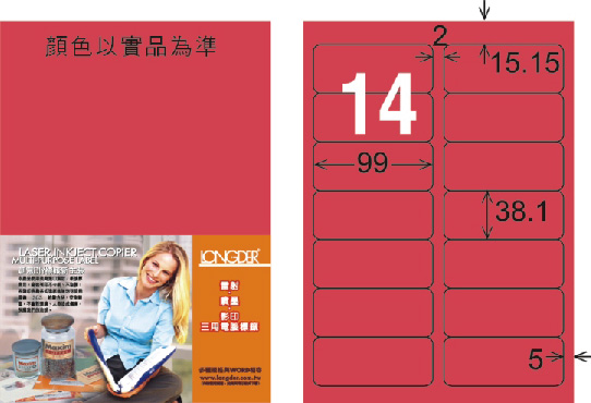 商品名稱:龍德 LD-816-FR-C A4雷射影印標籤 螢光紅 / 包