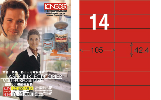 >龍德 LD-809-AR-A A4雷射影印標籤 紅銅版 / 盒