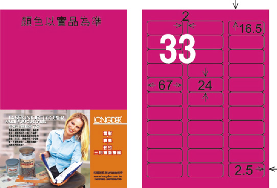 商品名稱:龍德 LD-819-FP-C A4雷射影印標籤 螢光粉紅 / 包