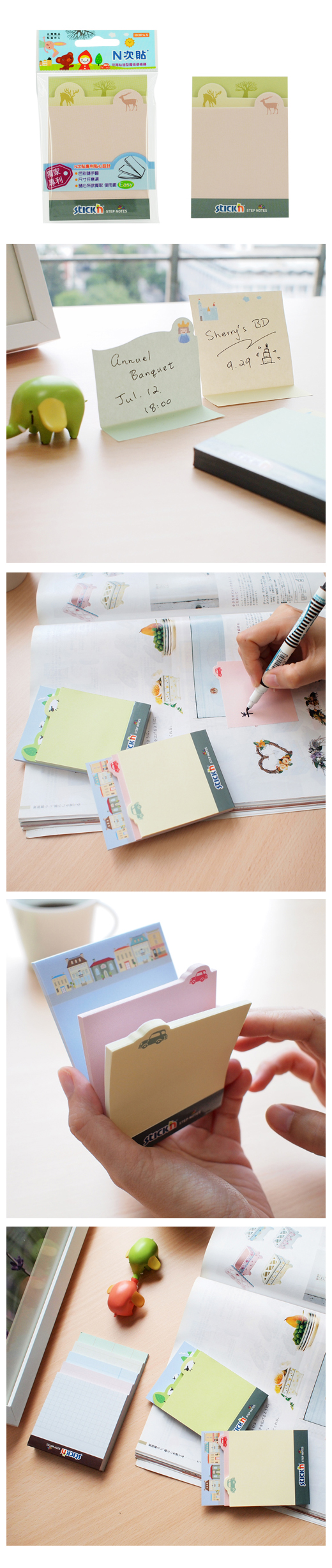 ◎品 名:N次貼 61324 魔術便條磚可再貼便條紙(新潮型),森林 4"x3"(101x76mm)◎單 位:90張/3本◎型 號:61324◎規 格:4"x3"(101x76mm),森林◎特 色:每一本都有三種圖案,與尺寸可選擇! N次貼專利貼心設計!隨手翻選、好撕、好寫也好粘,使用超方便!