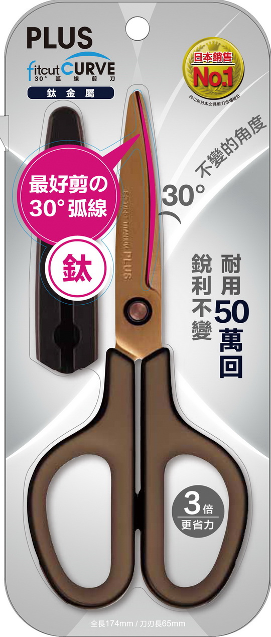 1.弧線形狀3倍更省力的安全弧線剪刀。2.採用流體力學原理、改良刀刃的開闔角度,保持30度特殊弧形,從底部到尖端皆可輕鬆順暢剪裁。3.高準確度/低摩擦係數的軸心結構可防止刀刃鬆弛晃動。4.表面鈦金屬,銳利度可使用50萬次以上不易生鏽。5.握把採用雙層結構柔軟材質,可減輕手指負擔。6.可防止小指滑落。7.規格:刃65mm/全長174mm