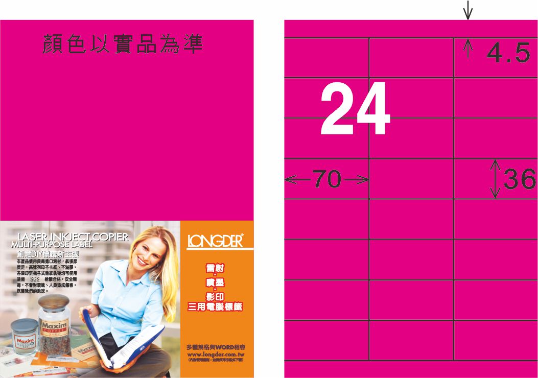 商品名稱:龍德 LD-826-FP-C A4雷射影印標籤 螢光粉紅 / 包