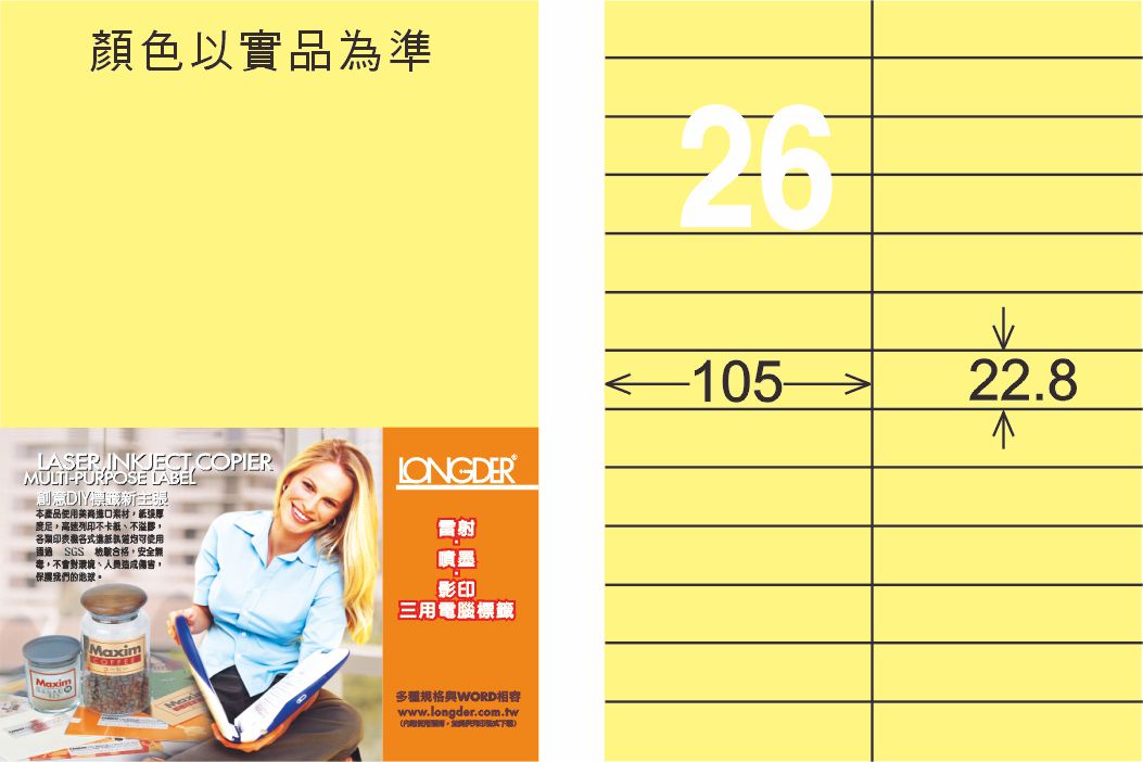商品名稱:龍德 LD-837-Y-C A4三用電腦標籤 淺黃色 / 包