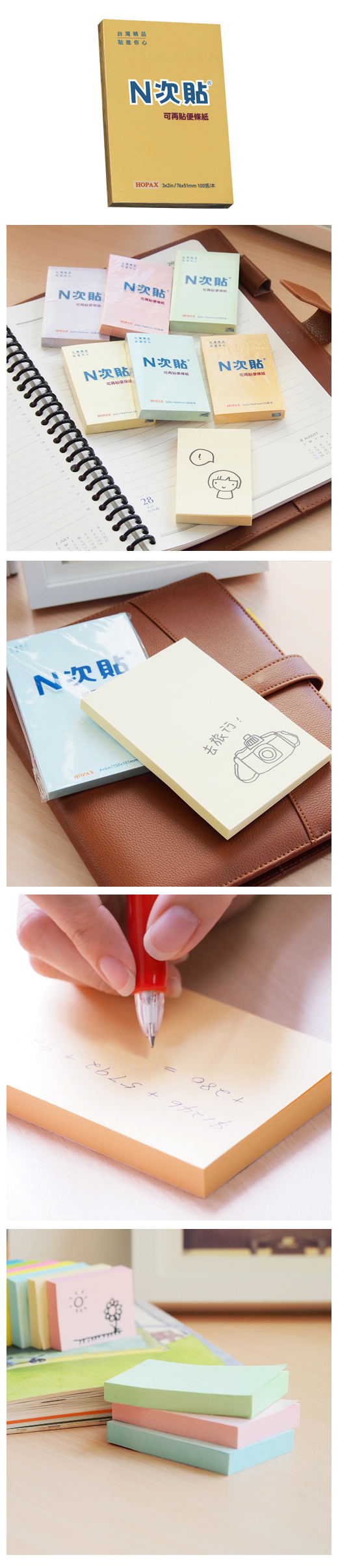 ◎品 名:N次貼 61113 標準型可再貼便條紙 3"x2"(76x51mm),橘◎單 位:100張/本◎型 號:61113◎規 格:3"x2"(76x51mm)◎顏 色:橘◎特 色:N次貼熱銷產品 標記提示輕鬆寫,分類備忘隨手貼 學習、筆記,好黏易撕重覆黏貼最便利!!