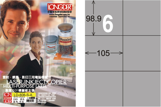 商品名稱:龍德 LD-808-S-A A4雷射影印標籤 銀色 / 盒