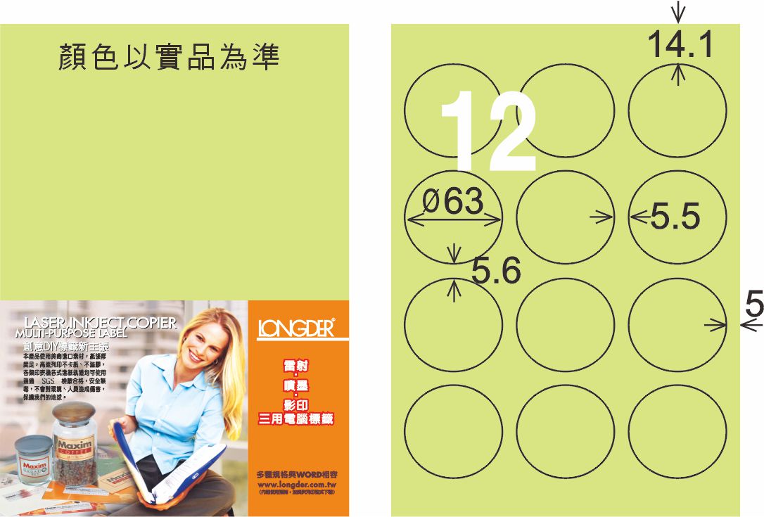 商品名稱:龍德 LD-821-G-C A4三用電腦標籤 淺綠色 / 包