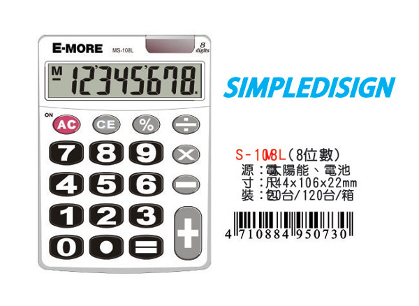 >{振昌文具}E-MORE 商用 計算機 MS-108L /台 (顏色隨機出)