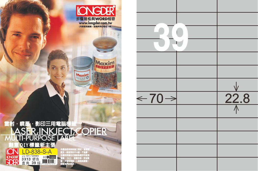 商品名稱:龍德 LD-838-S-A A4雷射影印標籤 銀色 / 盒