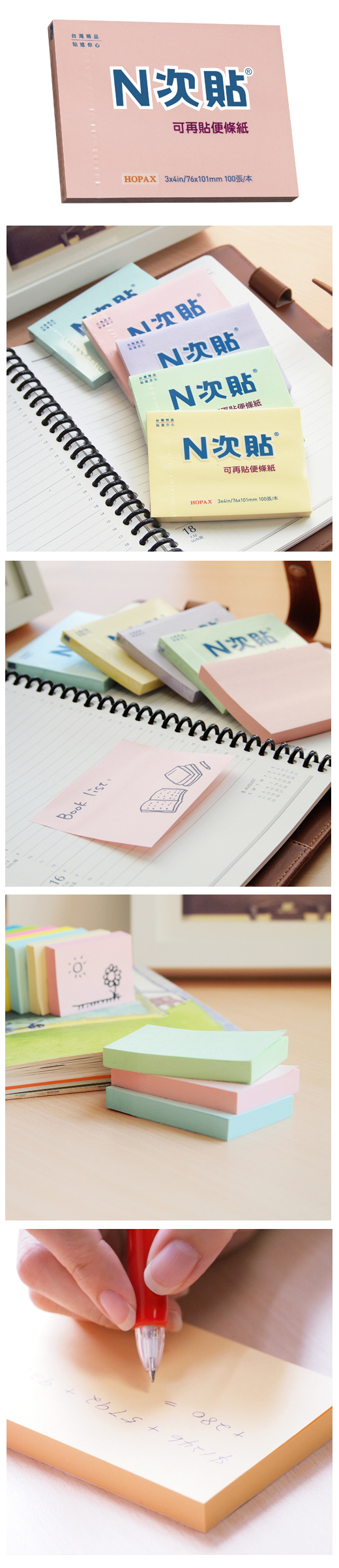 ◎品 名:N次貼 61122 標準型可再貼便條紙 3"x4"(76x101mm),粉紅◎單 位:100張/本◎型 號:61122◎規 格:3"x4"(76x101mm)◎顏 色:粉紅◎特 色:N次貼熱銷產品 標記提示輕鬆寫,分類備忘隨手貼 學習、筆記,好黏易撕重覆黏貼最便利!!