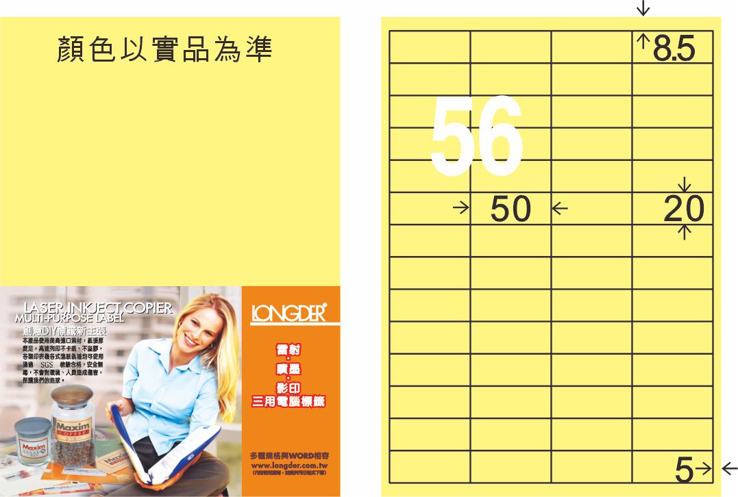 商品名稱:龍德 LD-824-Y-C A4三用電腦標籤 淺黃色 / 包