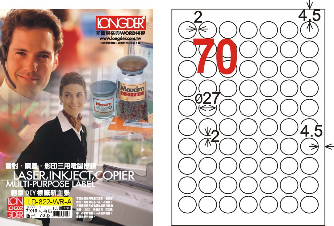 商品名稱:龍德 LD-822-WR-A A4模造可再貼 白色 / 盒