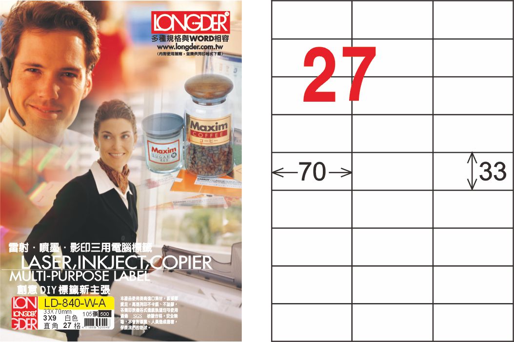 >龍德 LD-840-W-A A4三用電腦標籤 白色 / 盒