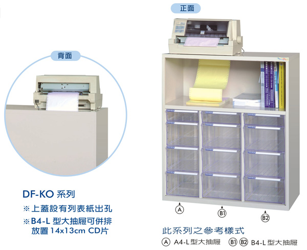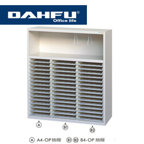 ◎A4、B4 各自系列規格,均有 OP 大小抽及大中小抽屜,可自由搭配。
