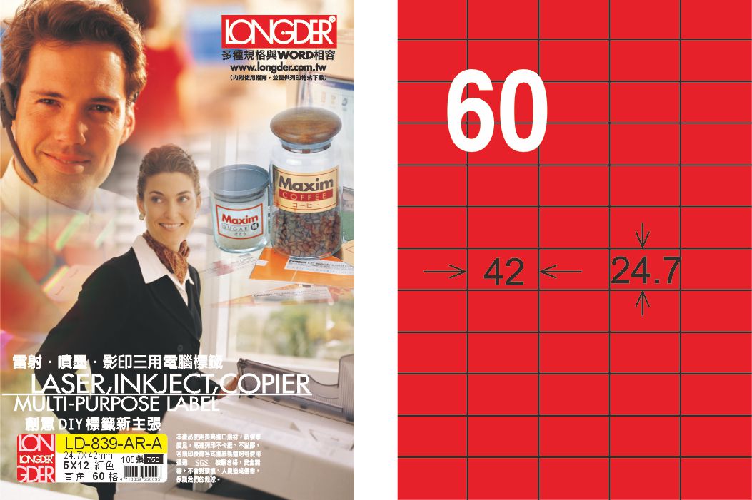 商品名稱:龍德 LD-839-AR-A A4雷射影印標籤 紅銅版 / 盒
