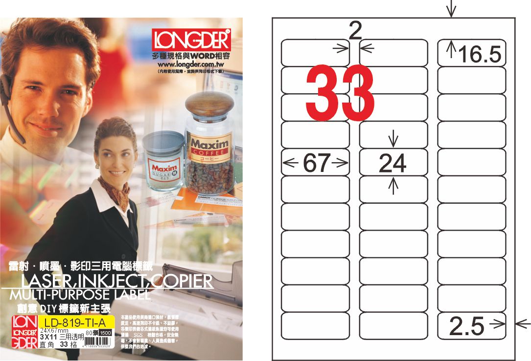 商品名稱:龍德 LD-819-TI-A A4透明三用標籤(可列印) / 盒