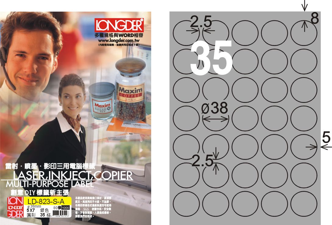 商品名稱:龍德 LD-823-S-A A4雷射影印標籤 銀色 / 盒
