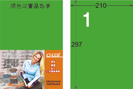 商品名稱:龍德 LD-800-FG-C A4雷射影印標籤 螢光綠 / 包