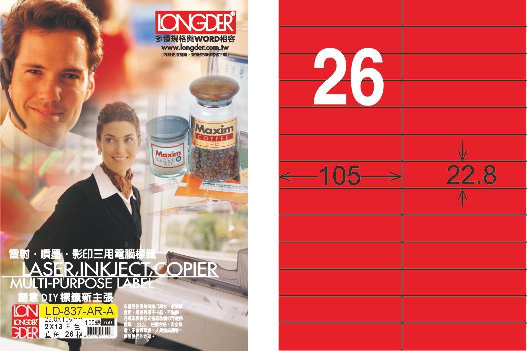 商品名稱:龍德 LD-837-AR-A A4雷射影印標籤 紅銅版 / 盒