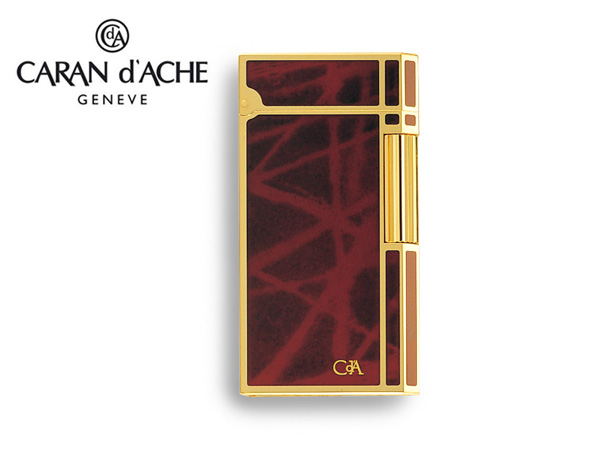 ◎ 品 名:CARAN d'ACHE 瑞士卡達 CdA 打火機. 鍍金中國漆(朱紅)