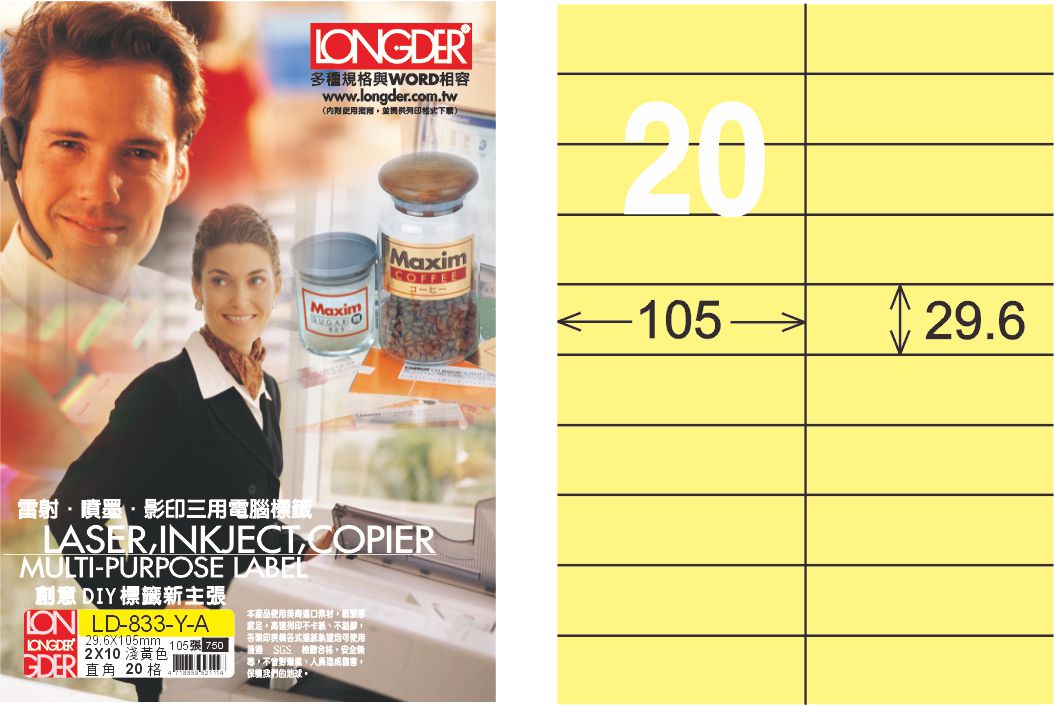 商品名稱:龍德 LD-833-Y-A A4三用電腦標籤 淺黃色 / 盒