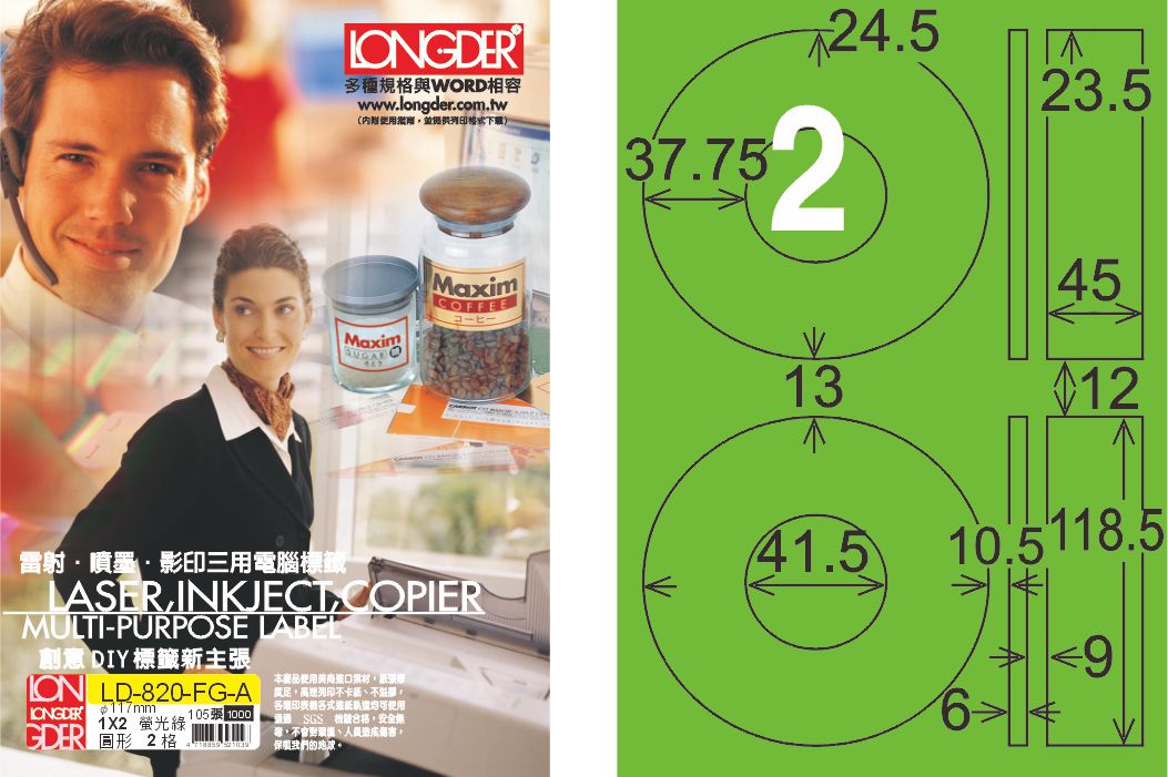 商品名稱:龍德 LD-820-FG-A A4雷射影印標籤 螢光綠 / 包