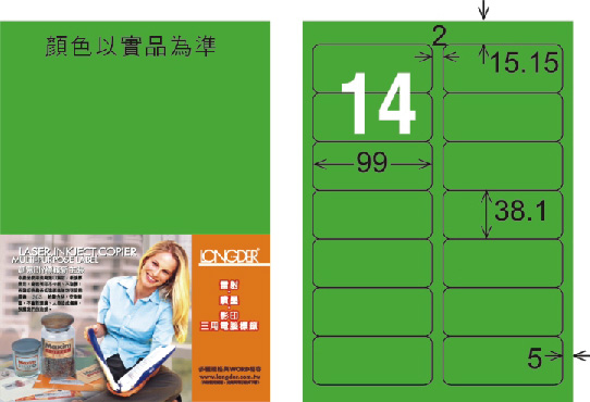 商品名稱:龍德 LD-816-FG-C A4雷射影印標籤 螢光綠 / 包