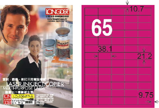商品名稱:龍德 LD-806-FP-A A4雷射影印標籤 螢光粉紅 / 盒