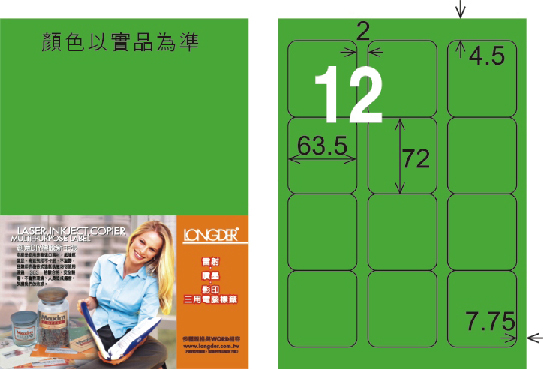 商品名稱:龍德 LD-815-FG-C A4雷射影印標籤 螢光綠 / 包
