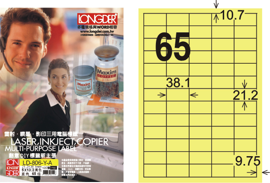 商品名稱:龍德 LD-806-Y-A A4三用電腦標籤 淺黃色 / 盒