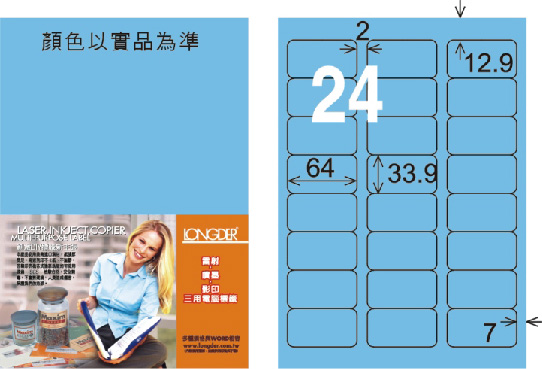 商品名稱:龍德 LD-818-B-C A4三用電腦標籤 淺藍色 / 包