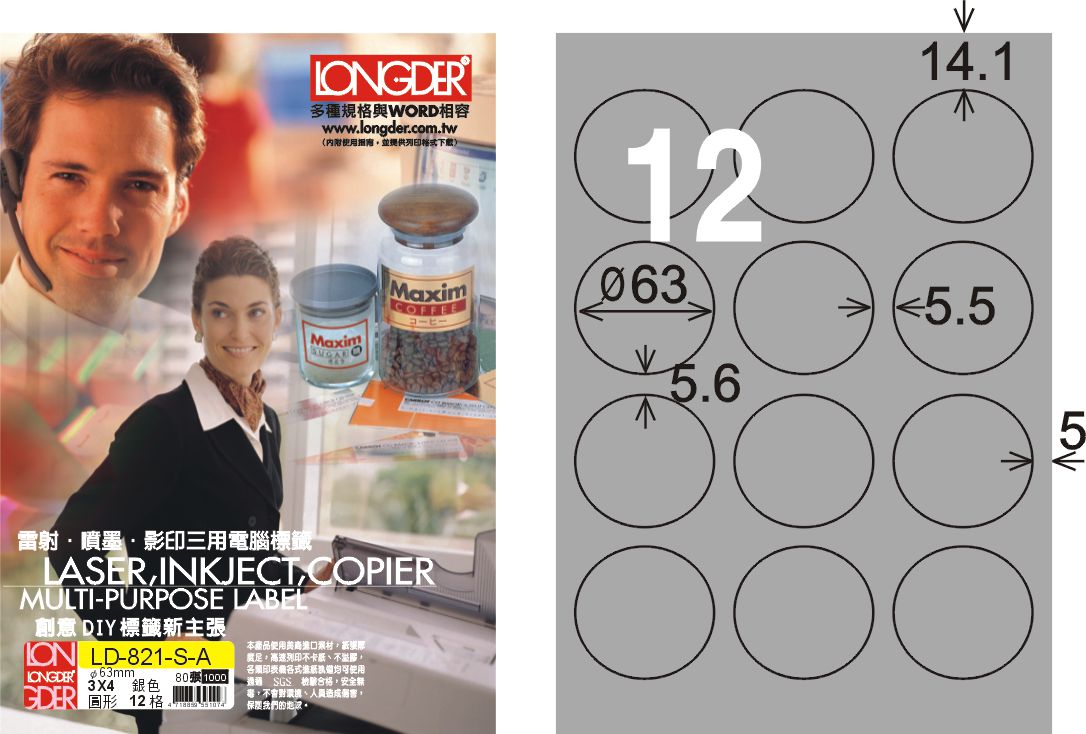商品名稱:龍德 LD-821-S-A A4雷射影印標籤 銀色 / 盒
