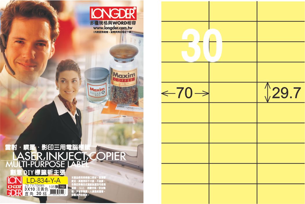 商品名稱:龍德 LD-834-Y-A A4三用電腦標籤 淺黃色 / 盒